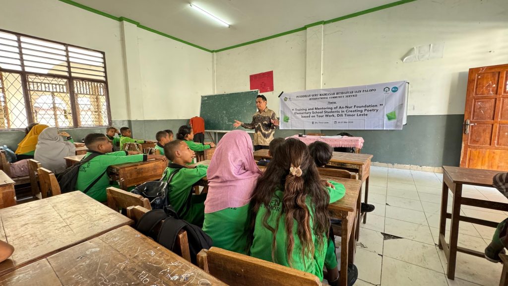 Dili, Timor Leste — Ada yang berbeda di halaman Sekolah Dasar Yayasan An-Nur, Dili, akhir Mei lalu. Tawa riang anak-anak berpadu dengan keseriusan mereka mencatat, mengamati, lalu menuliskan kata demi kata. Bukan tugas biasa, mereka tengah belajar menciptakan puisi—menggali rasa, menyusun diksi, dan mengekspresikan pengalaman mereka. Semua itu merupakan bagian dari kegiatan Pengabdian kepada Masyarakat (PKM) Internasional yang dilaksanakan oleh Program Studi Pendidikan Guru Madrasah Ibtidaiyah (PGMI), IAIN Palopo.