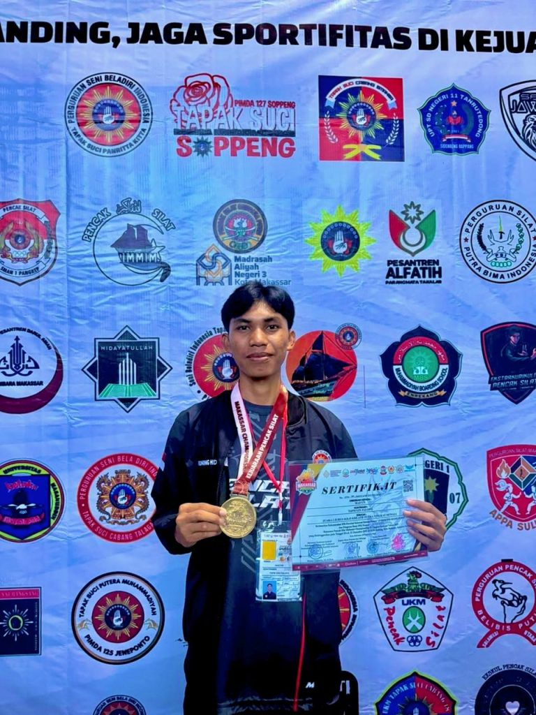 Mahasiswa Program Studi Pendidikan Guru Madrasah Ibtidaiyah (PGMI) Universitas Islam Negeri (UIN) Palopo kembali mengukir prestasi gemilang di tingkat nasional. Mas’un berhasil meraih medali emas pada ajang Kejuaraan Nasional Pencak Silat Makassar Championship 4 yang berlangsung di GOR Sudiang, Makassar, pada 20–21 Desember 2025.